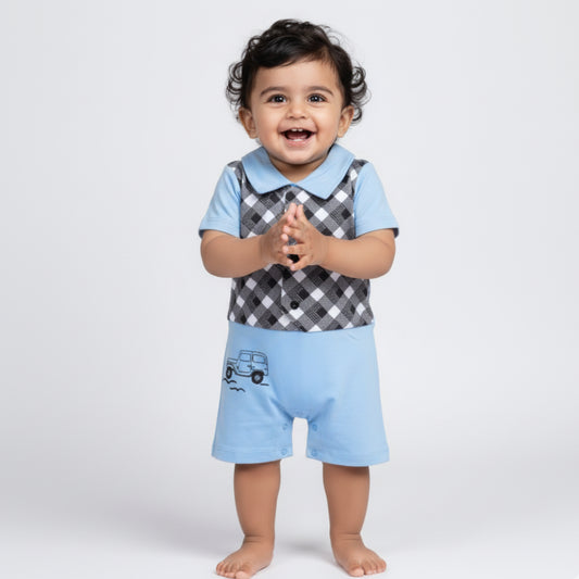 Firstkiss Infant Boy Plaid Vest Romper | Toddler Jeep Graphic One-Piece|Bunny